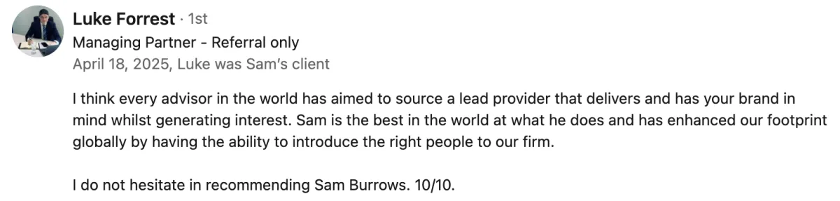 The offshore space is typically the complete opposite - low leverage methods that lack trust and require you to hire, train and manage demoralised BDM's. Cold outbound, cold calling and data digging.