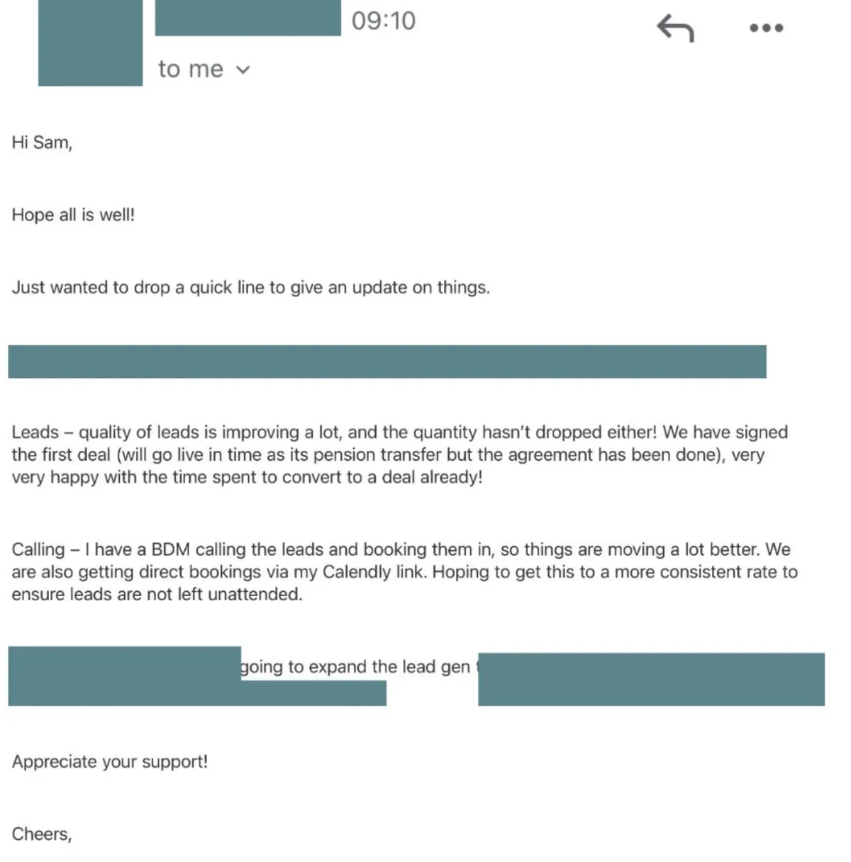 Regardless of where they were, my favourite feeling is always at some point in week 1 when they start booking their first appointments with great, open-minded prospects and realise they are onto a winning strategy.